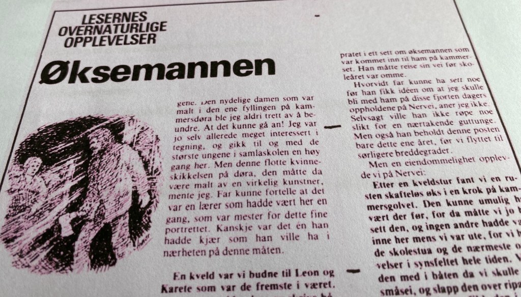 I magasinet «Vi menn» fra juni 1980 finner vi en fortelling fra Nervei i serien «Lesernes overnaturlige opplevelser». Den er skrevet av Anders Moe-Roghaug og har fått tittelen «Øksemannen». Den gjengis her i sin helhet: